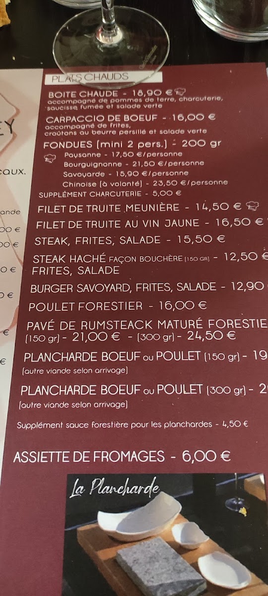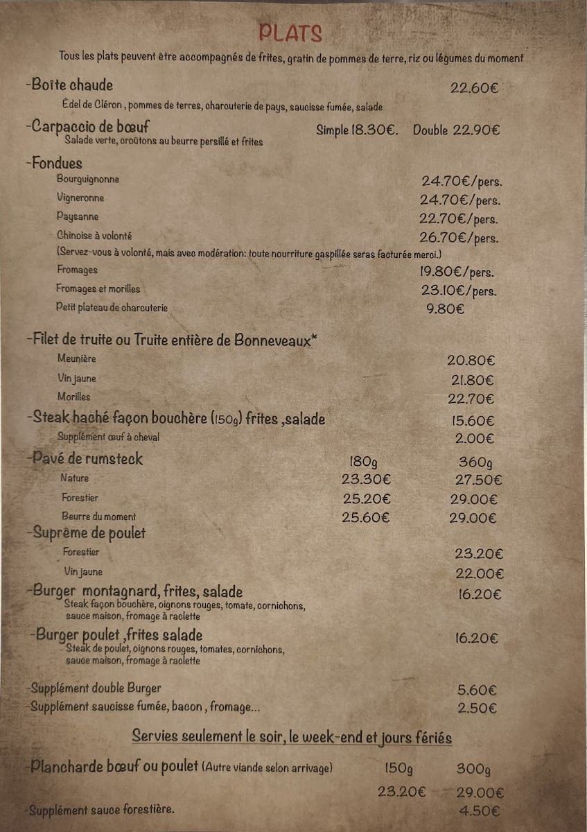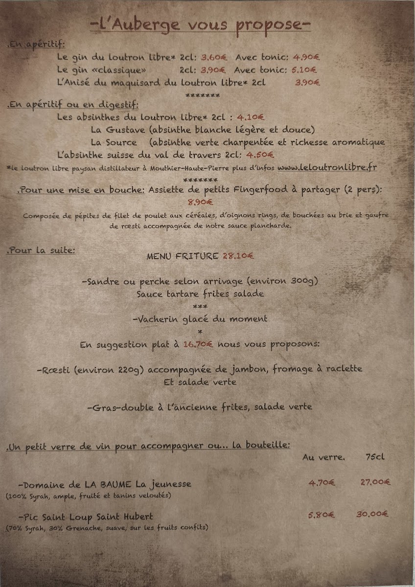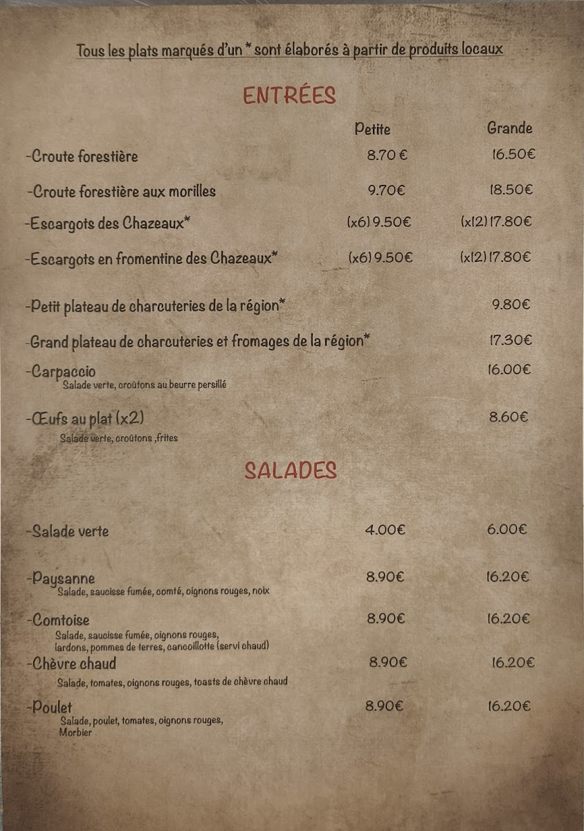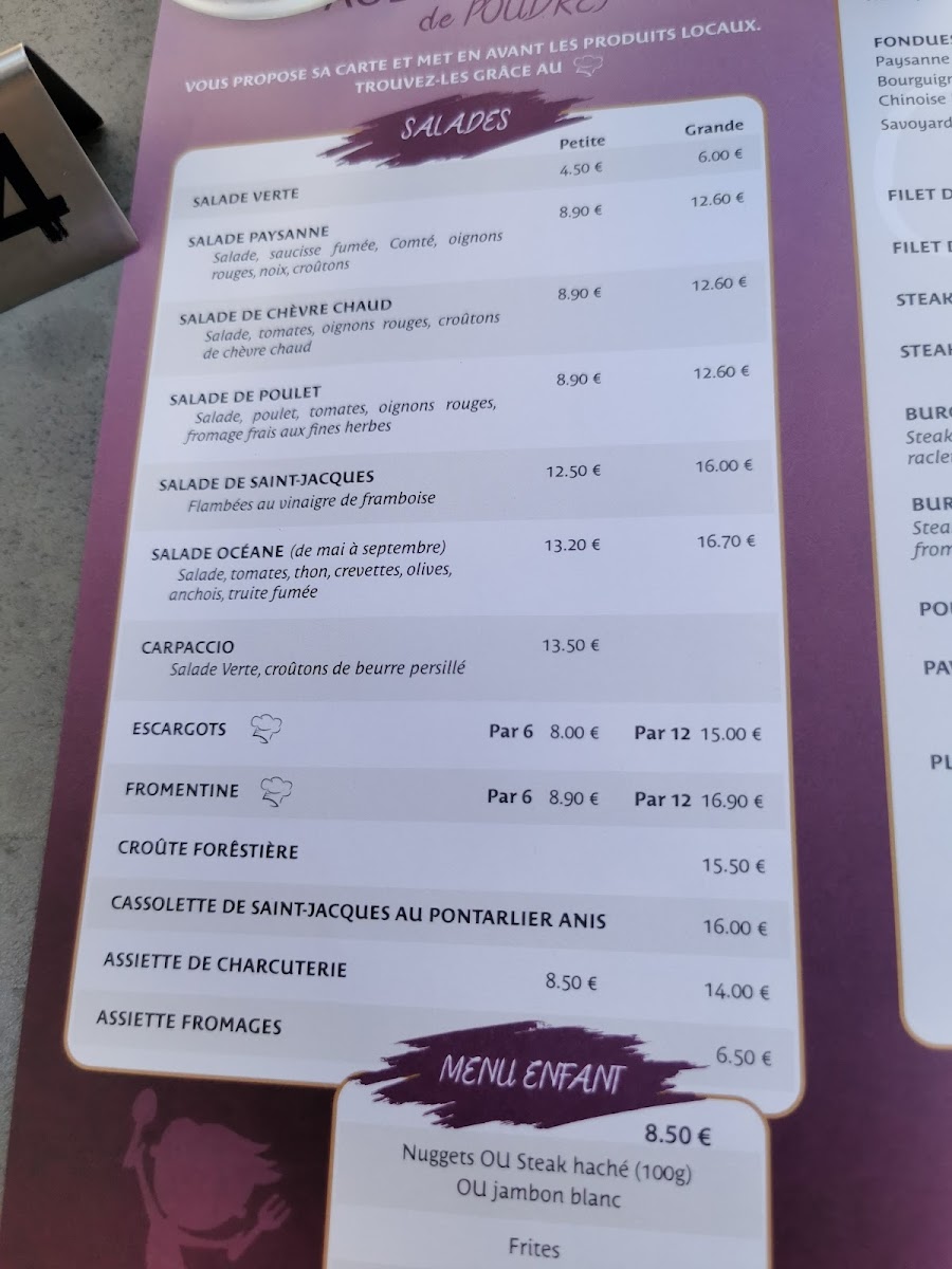 The menu at Auberge De Poudrey leaves a lasting impression with its focus on hearty regional specialties and comforting flavors that reflect the character of the Franche-Comté region. The Edel de Cléron Boîte Chaude stands out as a rich and indulgent centerpiece, showcasing the restaurant’s dedication to local cheese traditions, while the Salade Composée Et Croûtons de Chèvres Chauds offers a lighter yet still satisfying option with warm goat cheese adding depth and texture. For those seeking a classic and comforting main dish, the Poulet Pané delivers familiar flavors done well, balancing crispiness and tenderness. A true highlight of the menu is L Edel de Cleron Fromage Chaud Avec Ses Pommes de Terre Vapeur Et Sa Charcuterie, a generous and flavorful dish that perfectly represents the restaurant’s rustic identity, combining melted cheese, steamed potatoes, and charcuterie into a warm, satisfying meal. Overall, the menu feels authentic and generous, built around regional products and traditional recipes, making Auberge De Poudrey a memorable stop for anyone looking to experience comforting French countryside cuisine.